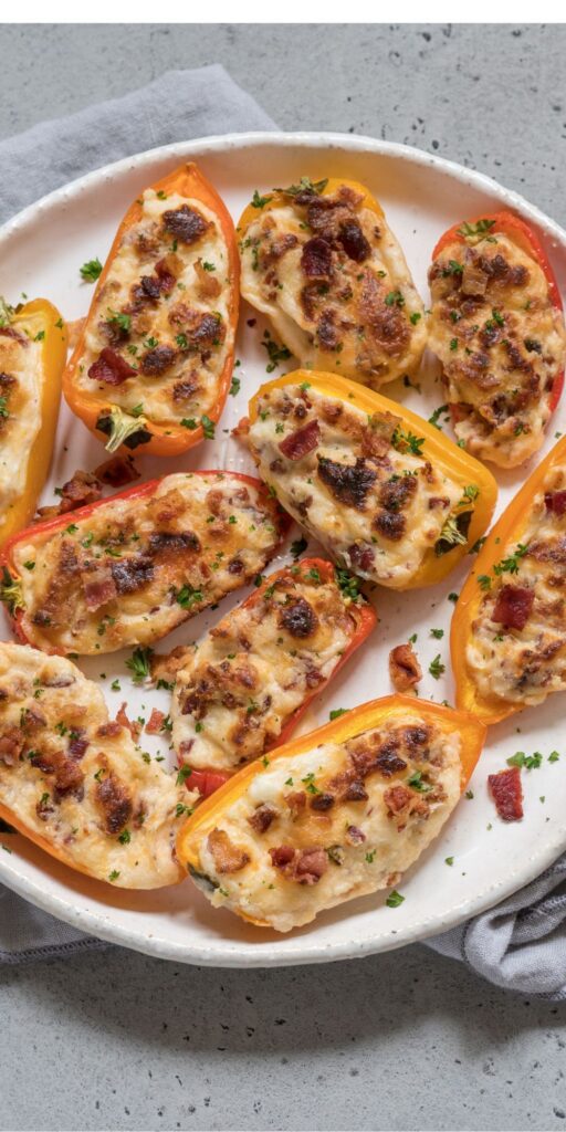 These stuffed mini peppers can be made ahead and served cold, making them ideal for low-carb snacks, stress-free hosting, potlucks, and buffet tables where easy grab-and-go snacks are a must.