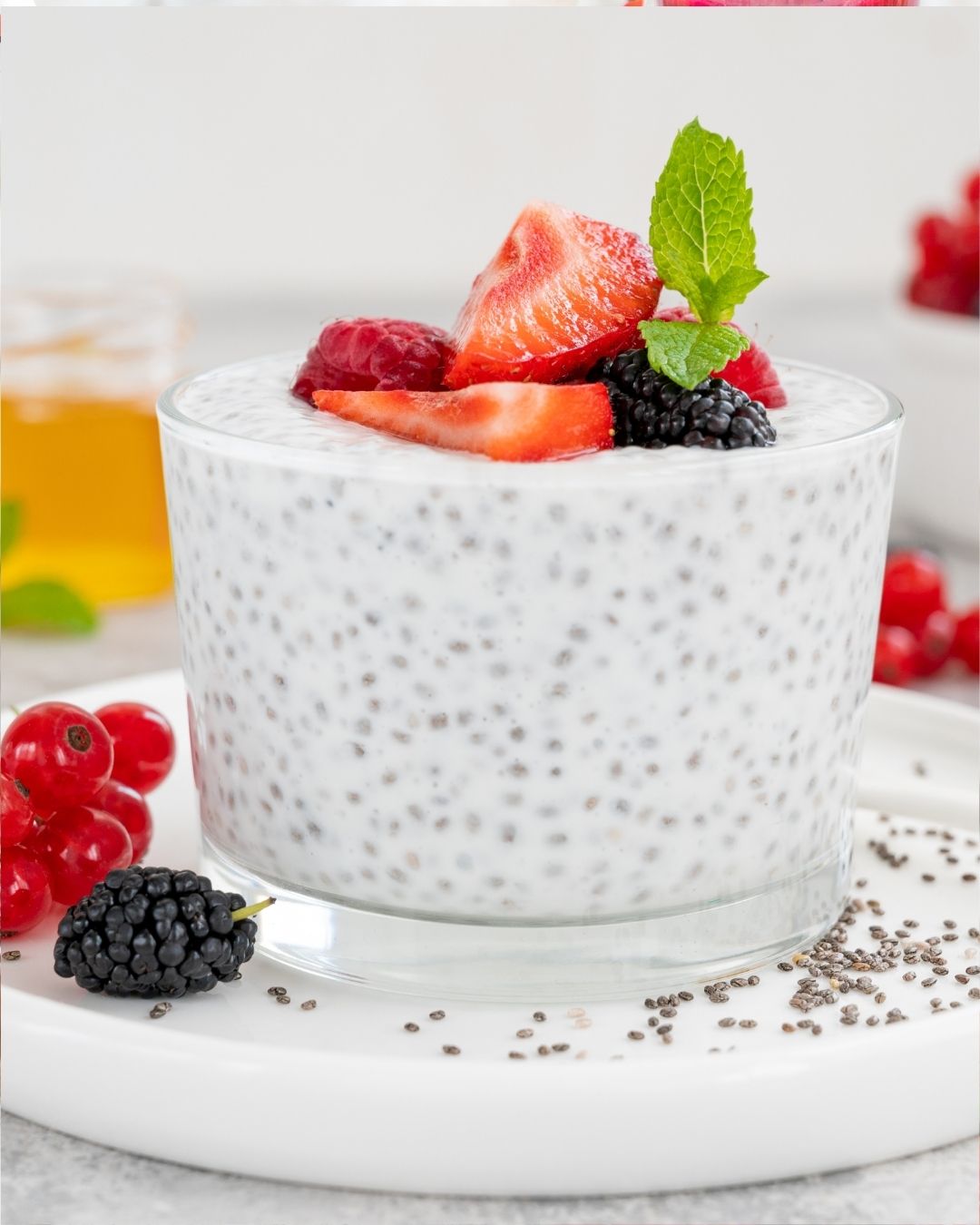 Perfect chia pudding has a consistency similar to thick yogurt or tapioca pudding – it should hold its shape when spooned but still be creamy and smooth.