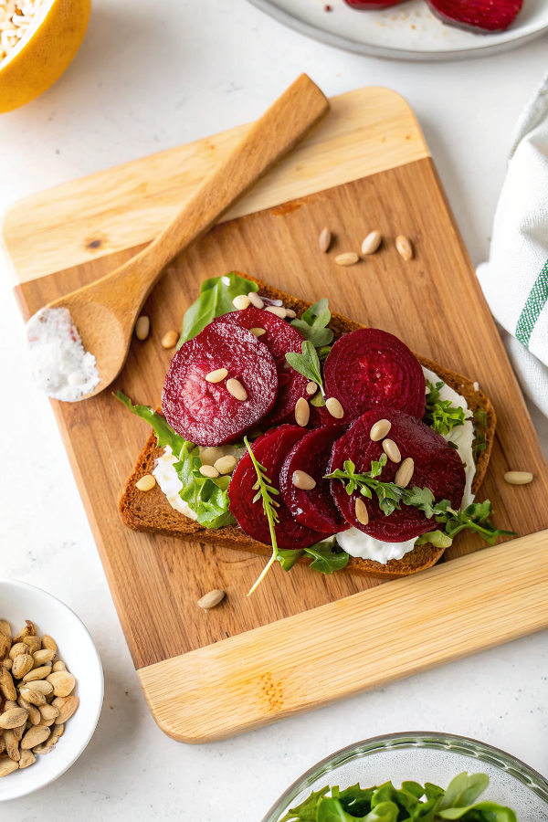 14. Roasted Beet Toast with Cottage Cheese and Sourdough Bread