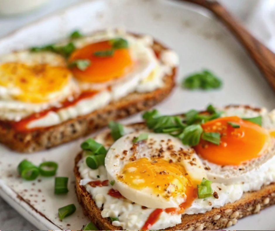 5. Cottage Cheese Egg & Sriracha Protein Toast