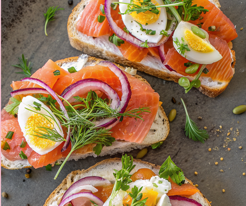 - Savory: Tomato, cucumber, radish, avocado, roasted veggies, pesto, salsa, smoked salmon, fresh herbs.