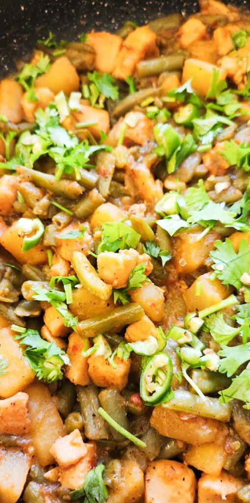 • Green Beans: Fresh and slightly crunchy, they bring color and freshness to the dish, balancing the heavier potatoes.
