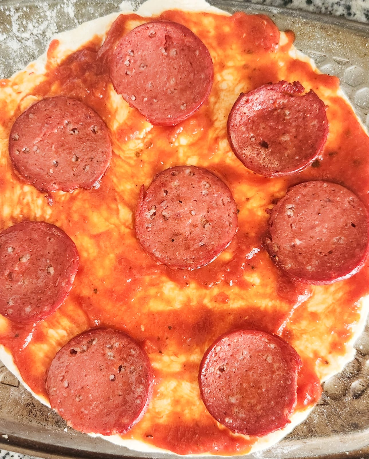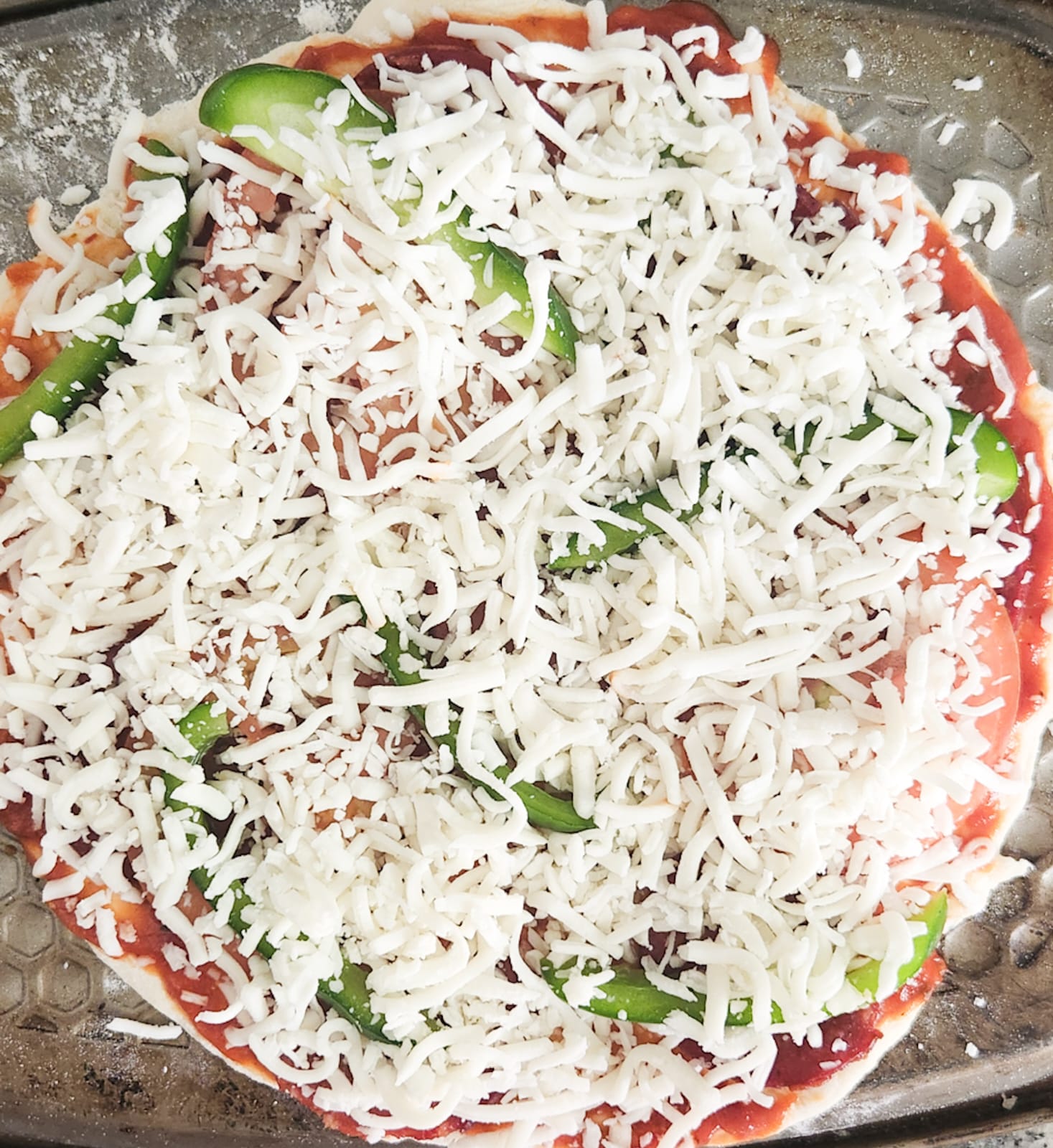 - This is where your creativity shines! Spread on your favorite pizza sauce, pile on the cheese, and go wild with your favorite toppings. Personally, I’m a sucker for a classic combo – pepperoni, sausage, and green peppers. But hey, the possibilities are endless!