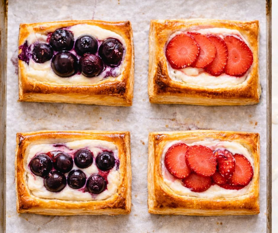• Preheat the oven to 400°F (200°C) and line a baking tray with parchment paper. This ensures even baking and prevents the danishes from sticking. Make sure the oven reaches full temperature before placing the pastry inside.