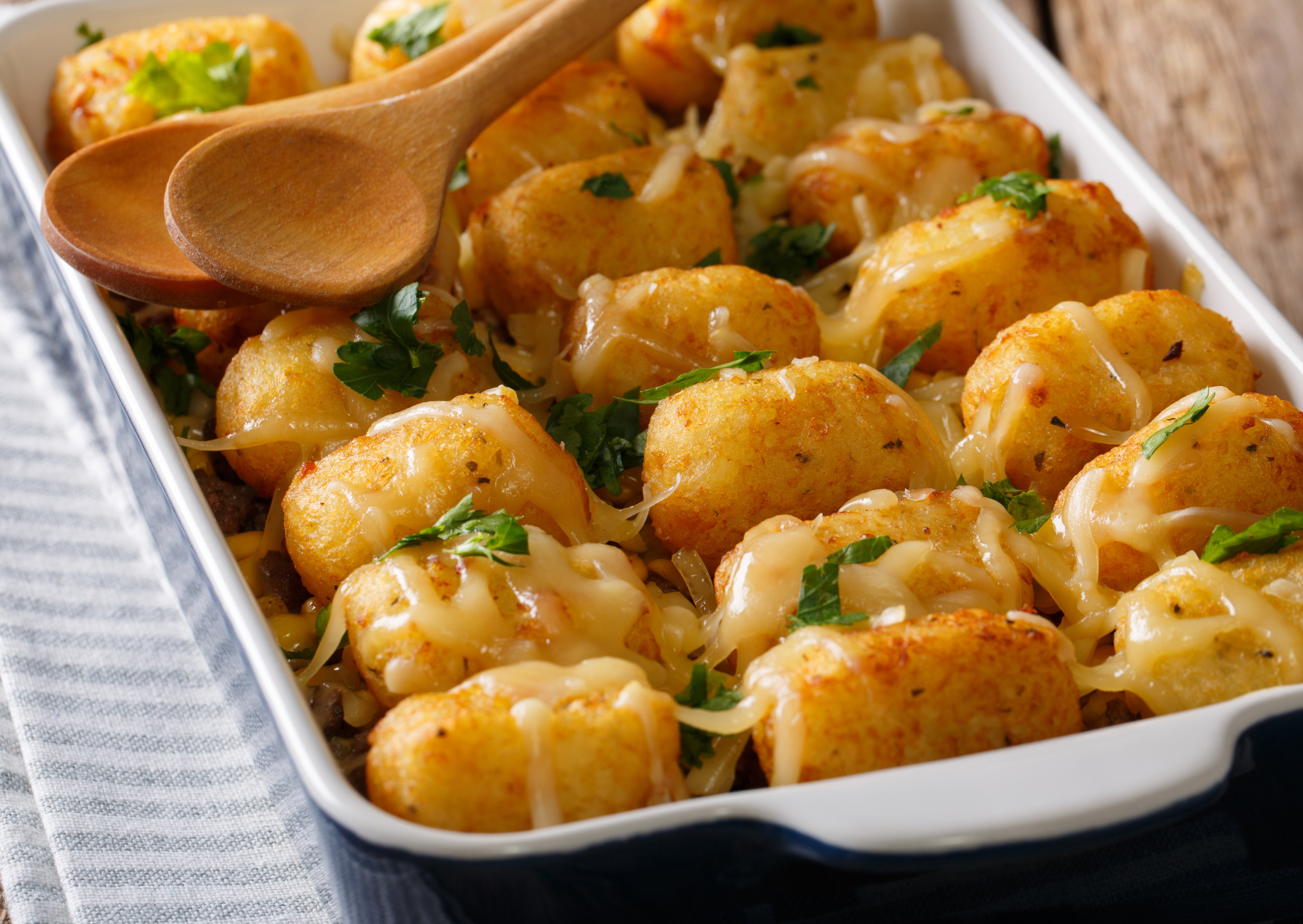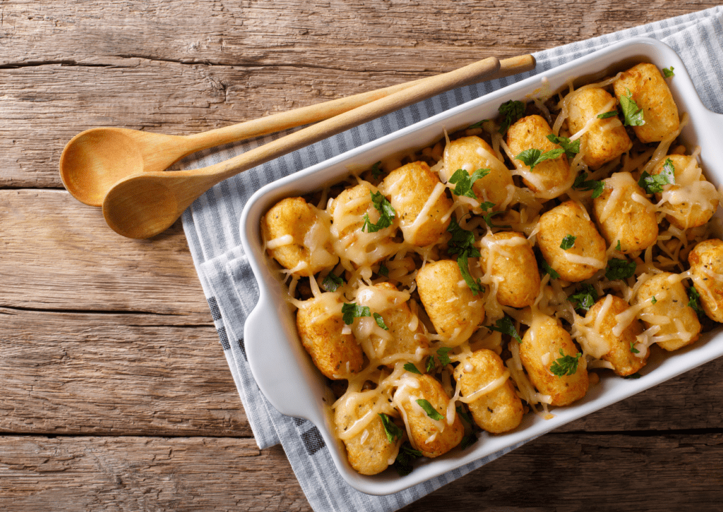 It also helps the tots hold their crispiness longer. Especially if you’re serving at a party, this little pause keeps your loaded tater tots looking and tasting perfect.