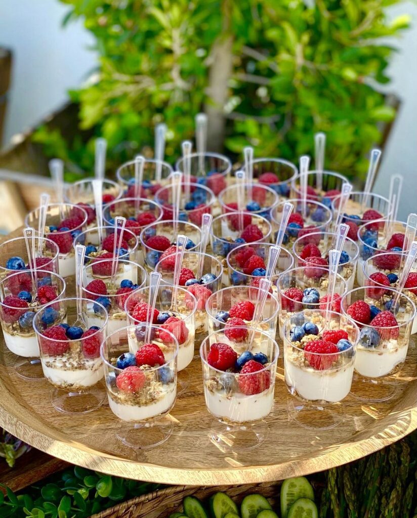 Layered sweets served in small glasses feel elegant and portion-controlled. They’re perfect for buffet setups because guests can grab an individual serving without extra plating.