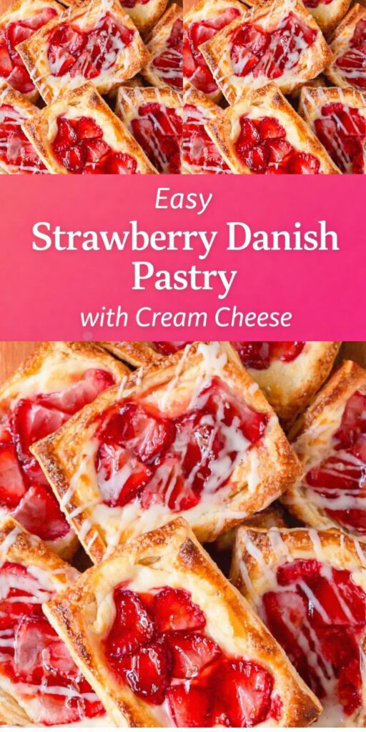 Flaky puff pastry layered with creamy filling and fresh strawberries makes this Danish feel special yet simple. A beautiful addition to a buffet when you want something sweet and bakery-style.
