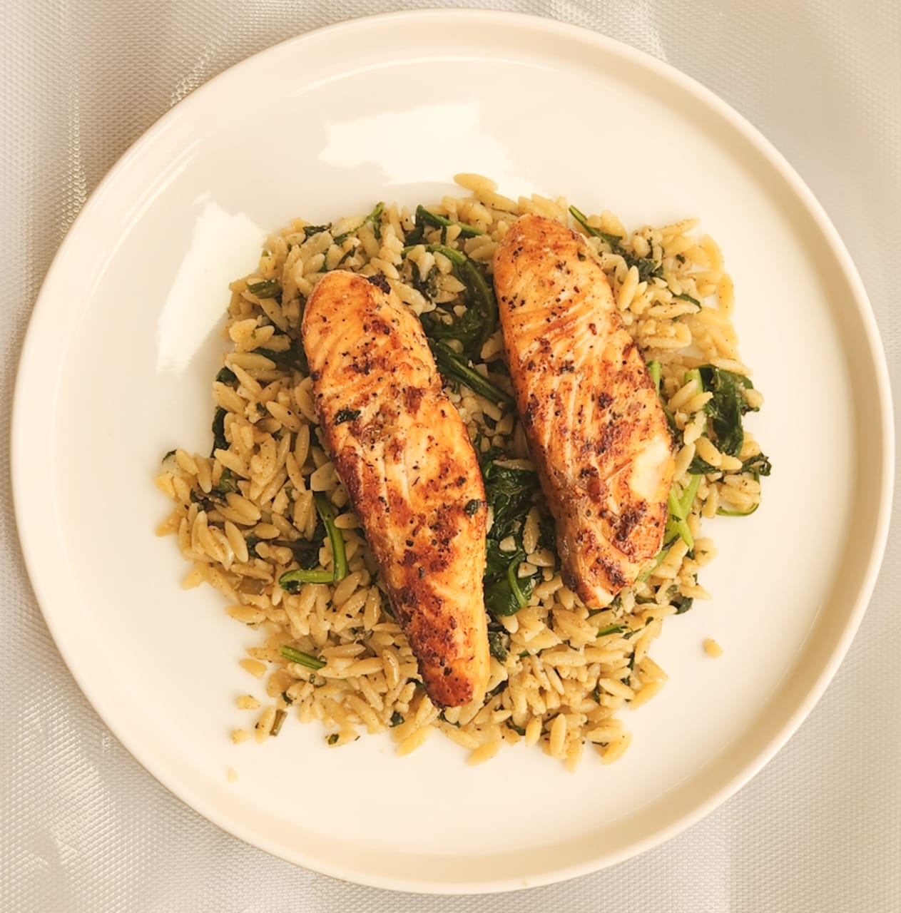 While it’s not recommended to freeze the entire dish, you can freeze the cooked salmon and orzo separately. When you’re ready to eat, simply reheat the salmon and orzo and then combine them with the spinach and lemon sauce.