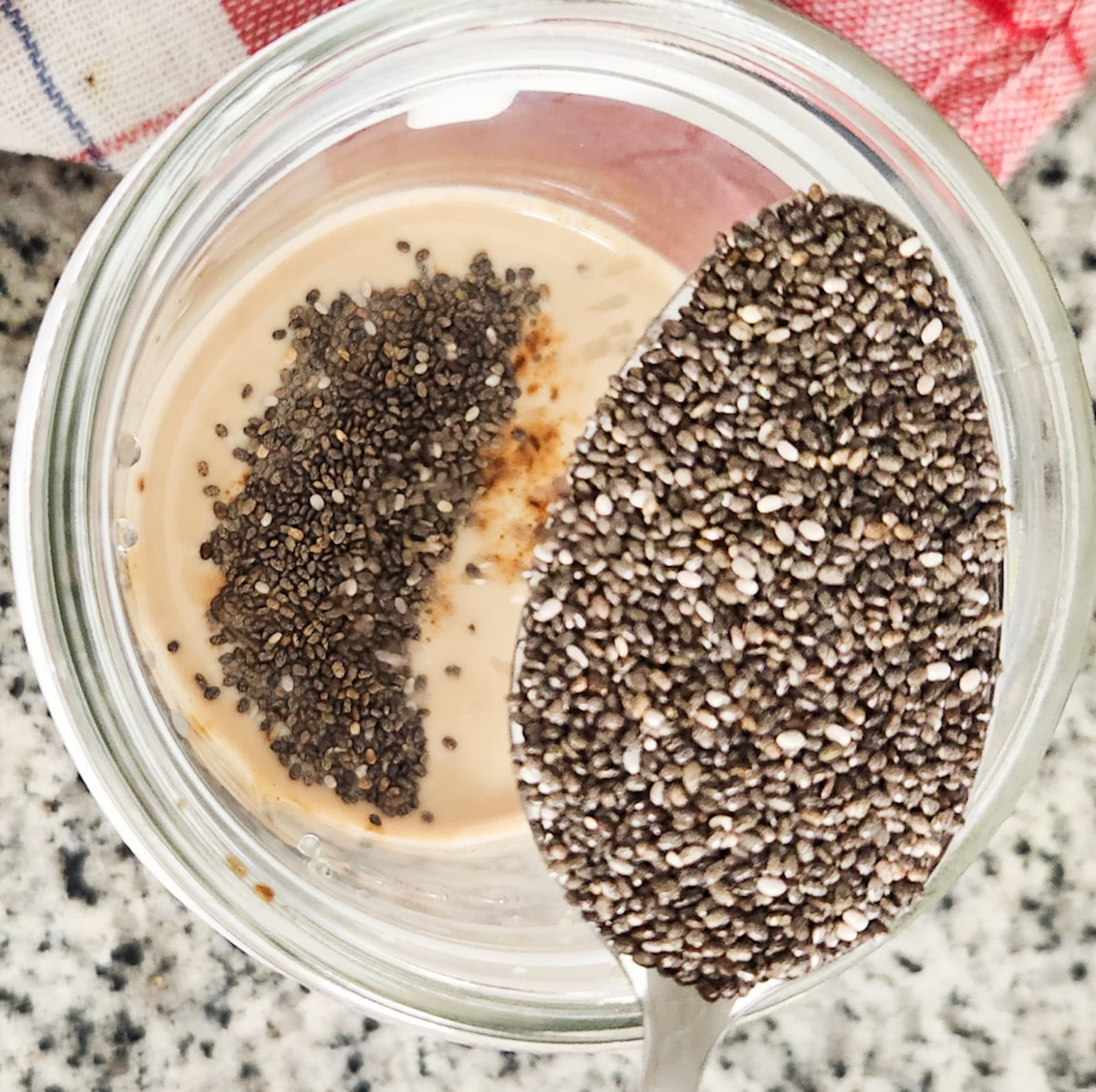 • Add Chia: Stir in chia seeds slowly, mixing well to avoid clumps.