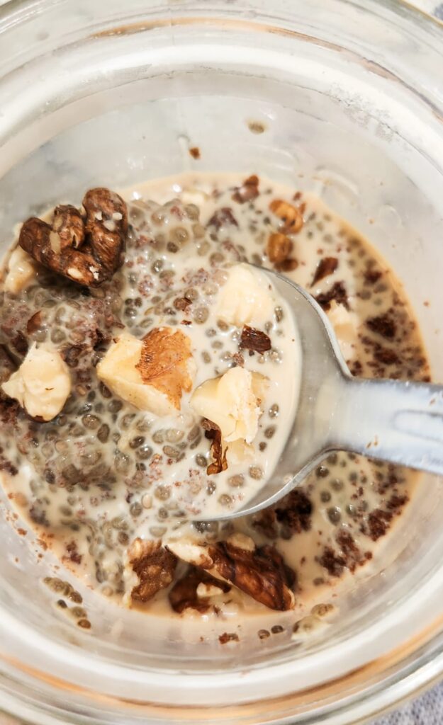 • Mix twice: Stir once after 10 minutes of refrigeration to prevent chia seeds from settling at the bottom.