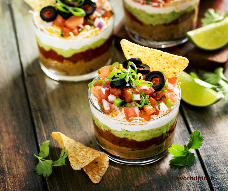Because fresh ingredients are essential here, these dip cups are best made no more than a day ahead to preserve the vibrant layers and colors. Guacamole can oxidize over time and salsa may release liquid, which makes early prep less than ideal.