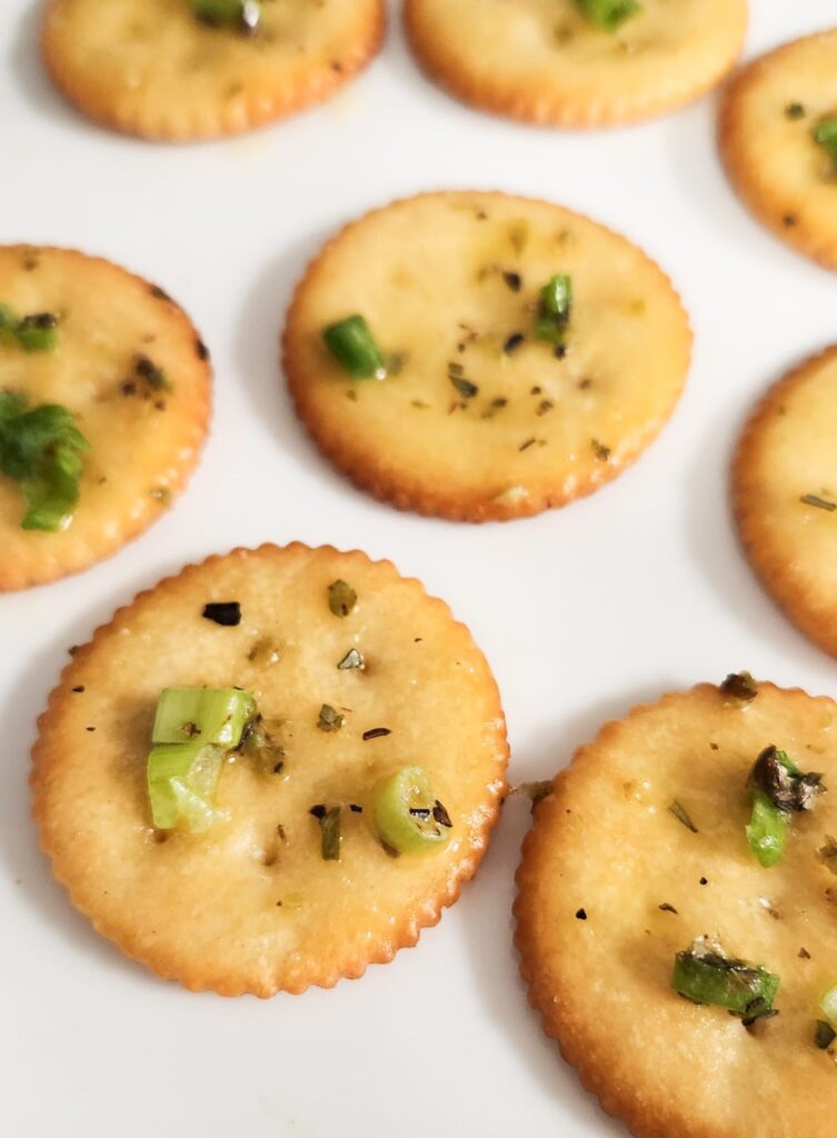 These Spicy Garlic Butter Ritz Crackers come together in minutes using everyday pantry staples like Ritz crackers, butter, garlic seasoning, and optional cheese.