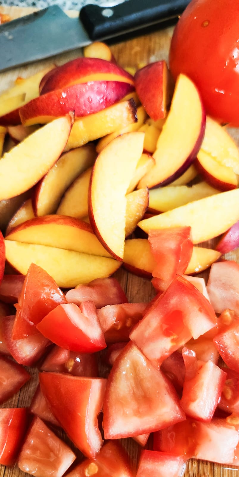 No peaches? No problem. The salad is flexible. What matters most is keeping that sweet-spicy balance.