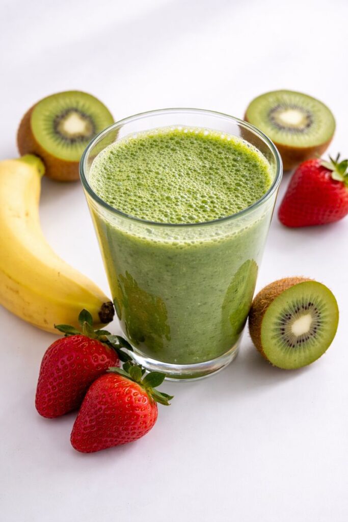 One of the biggest advantages of this smoothie is that it delivers balanced nutrition in a single glass. Each serving provides an excellent source of vitamin C from the strawberries and kiwi, which helps strengthen your immune system and promote healthy skin. The banana adds natural potassium, supporting heart health and proper muscle function, while Greek yogurt boosts the protein content to keep you feeling full and satisfied. Almond milk keeps the recipe lighter in calories compared to dairy milk, while still adding creaminess. Together, these ingredients create a nutrient-dense option that’s naturally low in fat, packed with fiber, and rich in antioxidants—making it an ideal choice for breakfast, a midday snack, or even post-workout recovery.
