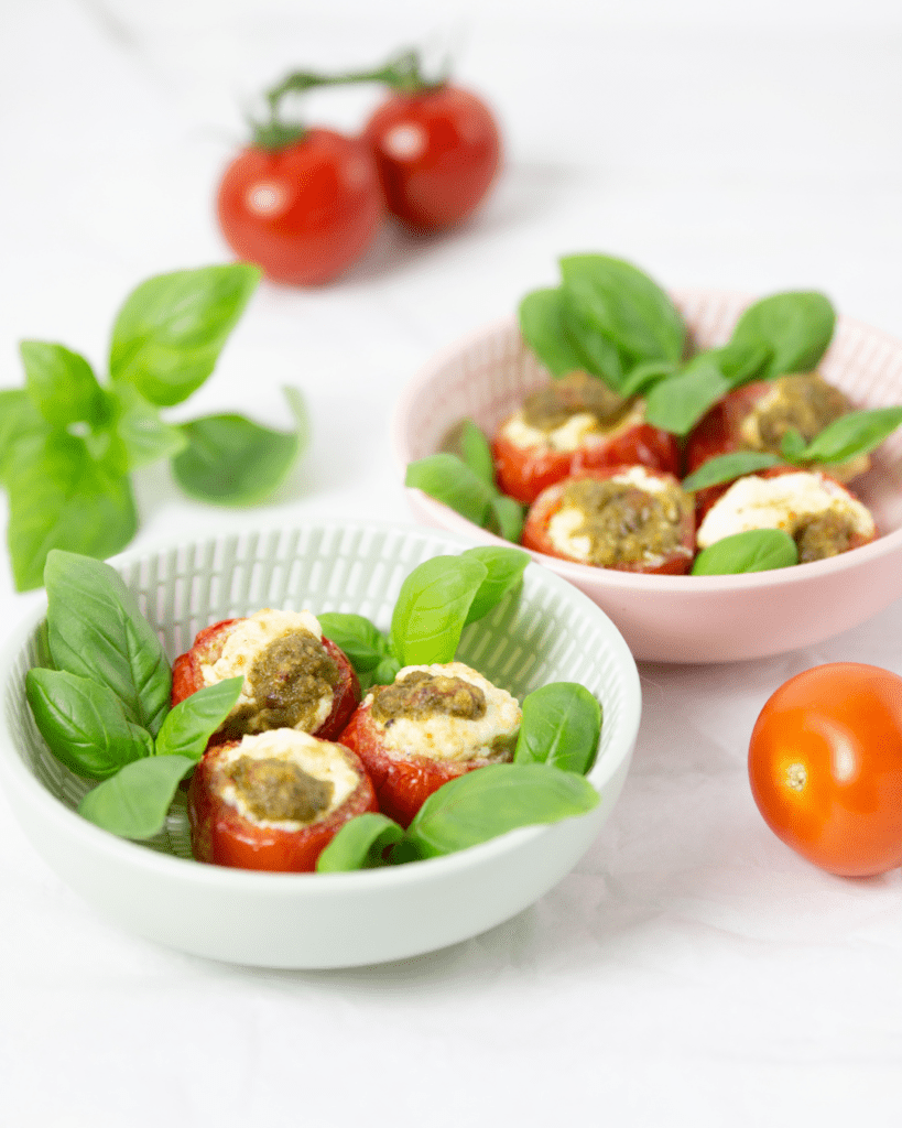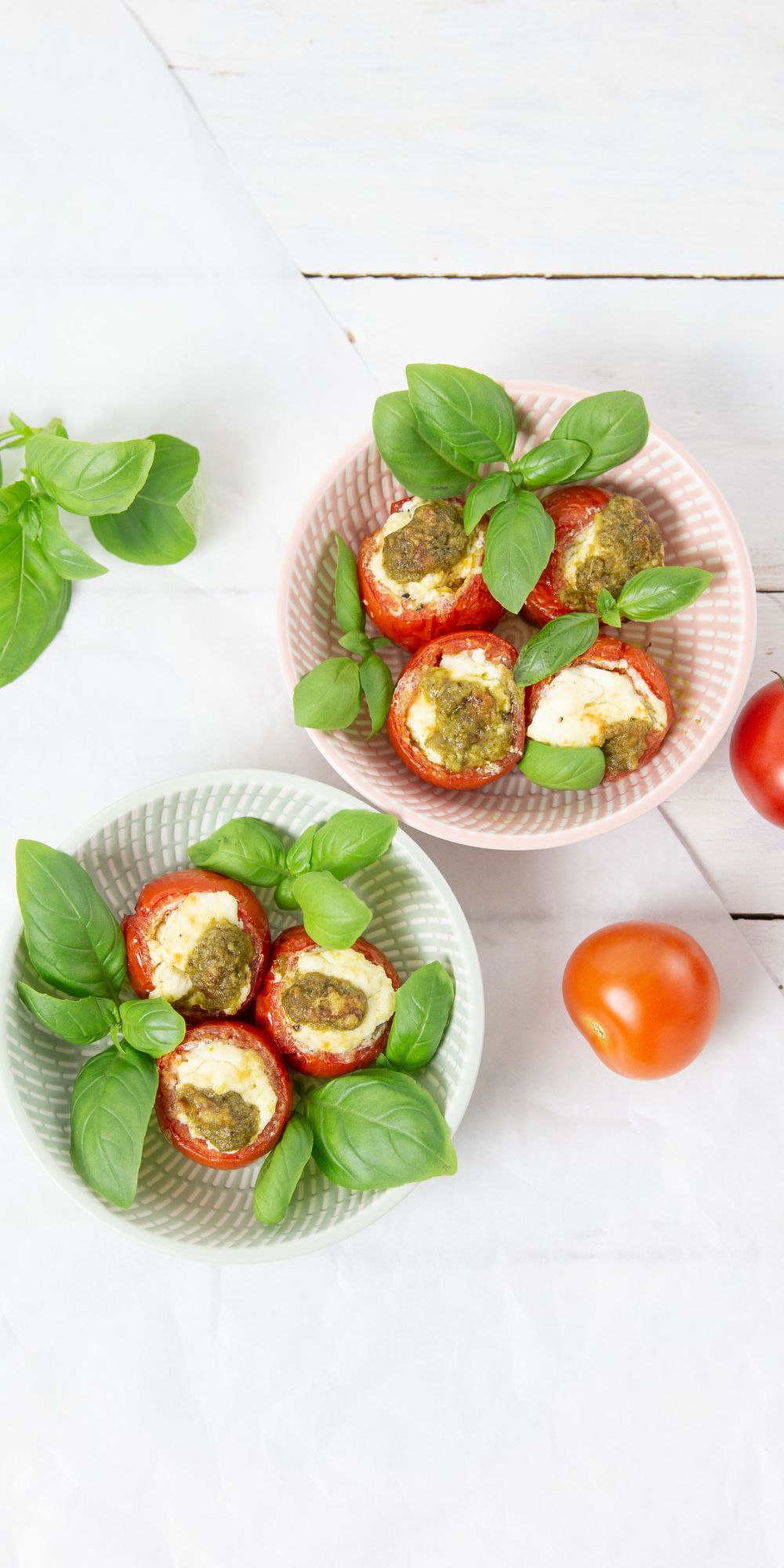 Stuffed Cherry Tomatoes with Pesto and Basil