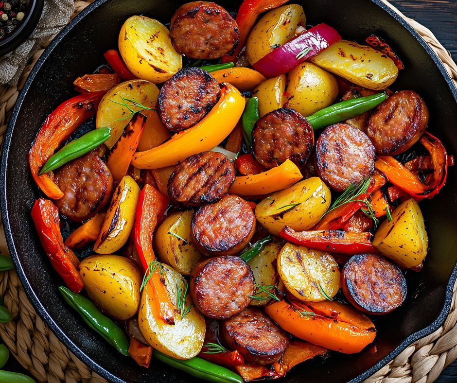 Sausage links, bell peppers, onions, and a splash of olive oil and herbs roast into a colorful, hands‑off dinner that’s high on flavor and easy on the cook.