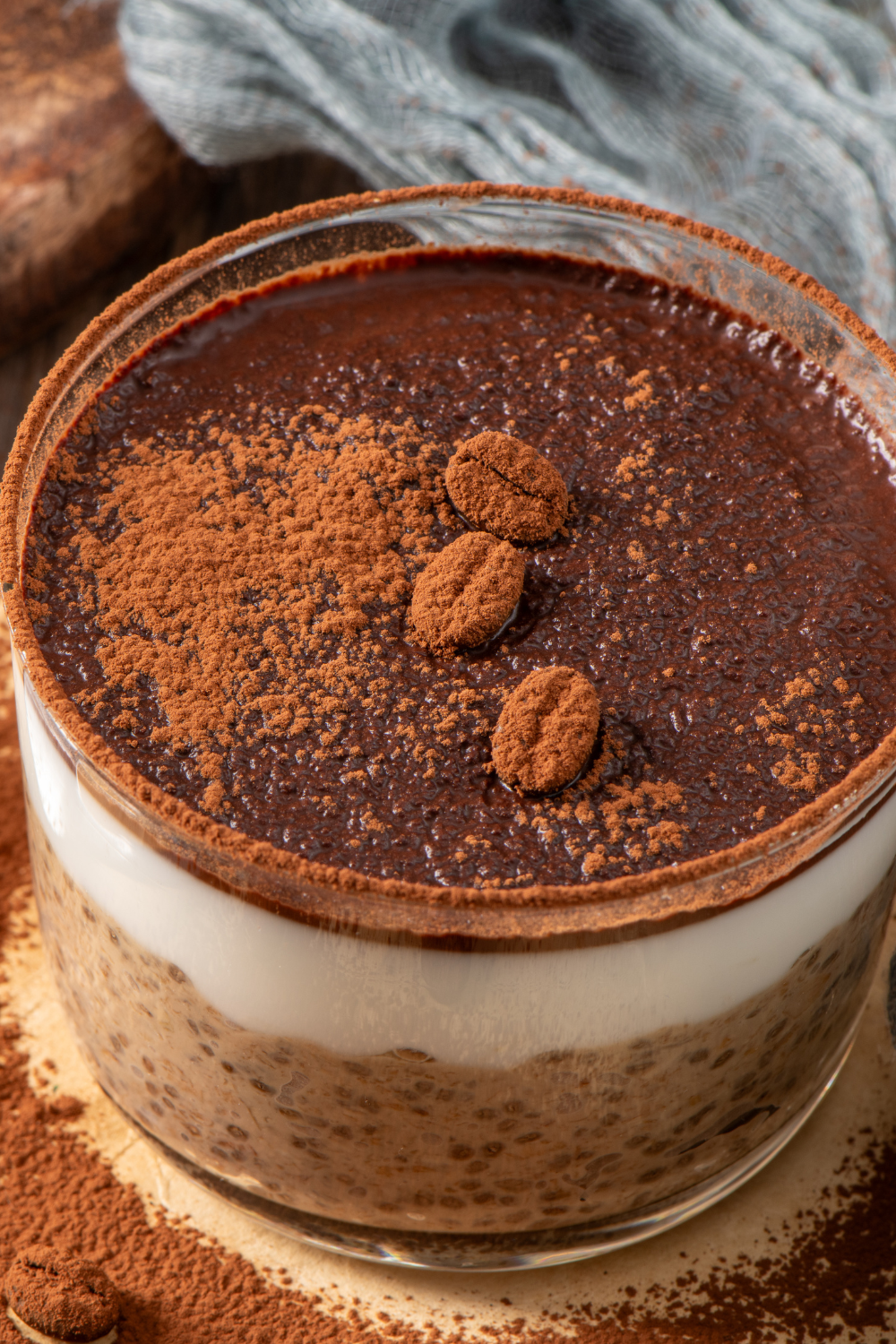 Charge your morning routine with ready-to-eat pudding jars. Spoon the tiramisu chia pudding into small mason jars, add a light dusting of cocoa or cinnamon, and seal tightly. Store in the fridge overnight so the flavors meld and the chia seeds soften.