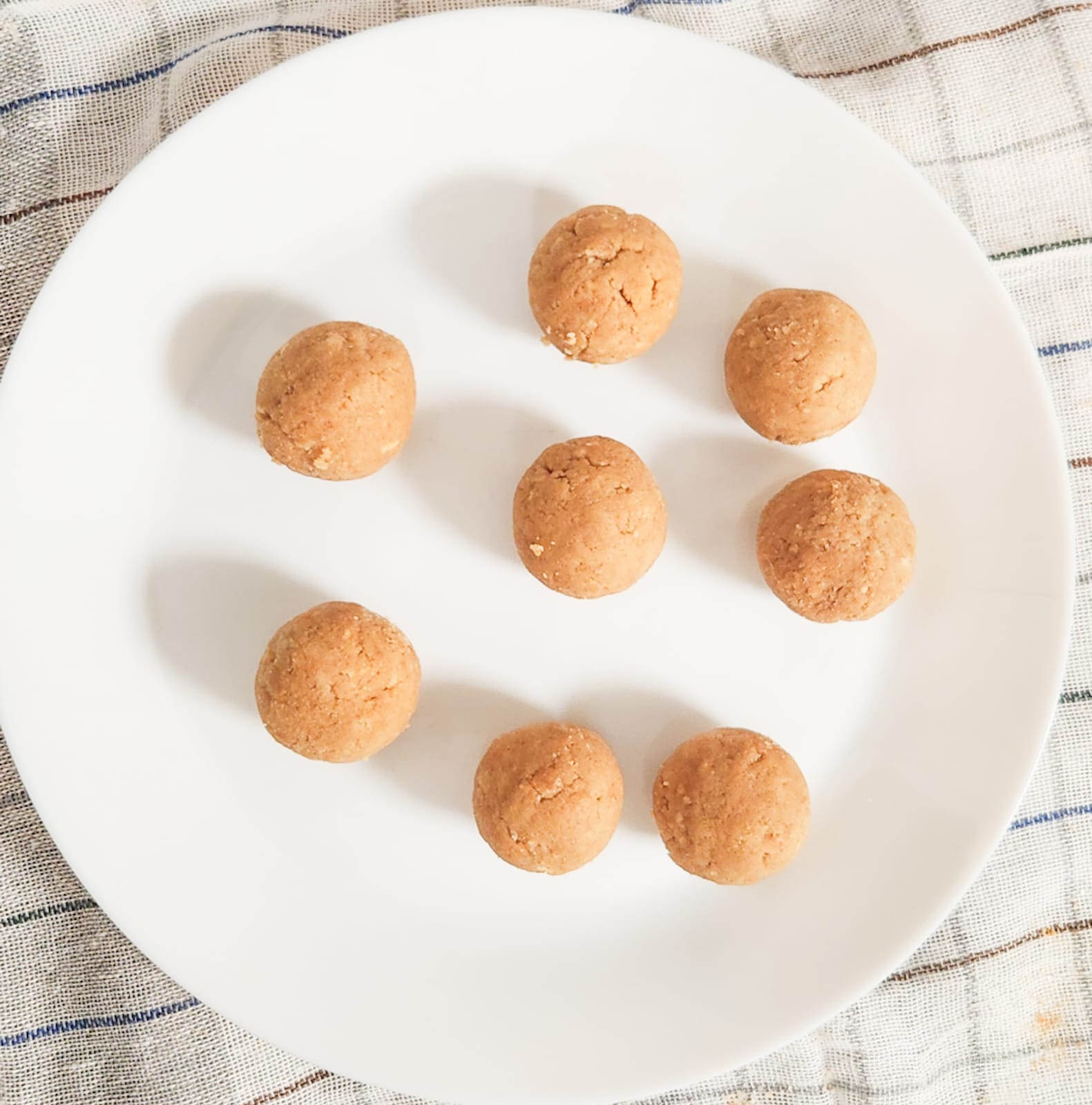 - Using a teaspoon or small cookie scoop, portion out the mixture and roll it into small balls with your hands. Place the truffles on a plate or tray, leaving a little space between each.