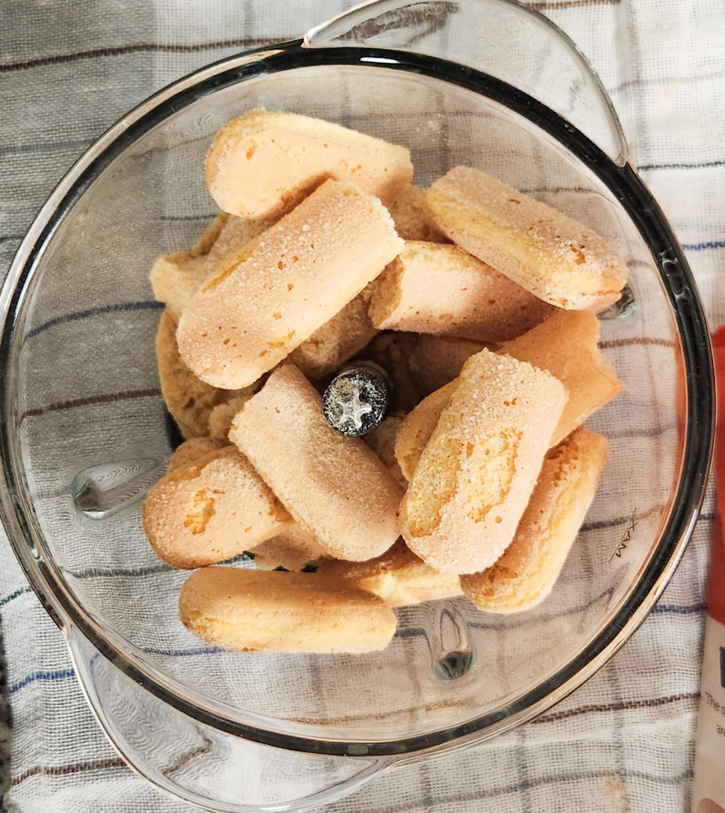 - Place your savoiardi biscuits (ladyfingers) in a blender or food processor. Blitz them until they become a fine, powder-like consistency. The goal is a texture that will blend seamlessly into the creamy mixture without leaving chunks.